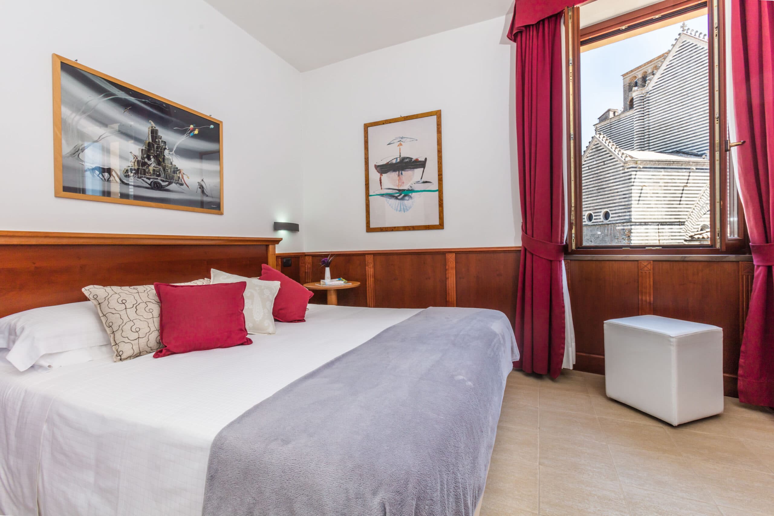The Hotel Duomo di Orvieto is the perfect choice for those seeking a unique experience in the heart of the city, thanks to its unmatched location—right in front of the Duomo, just 15 steps away from its entrance.